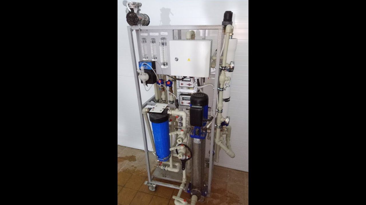 Пилотная установка обратного осмоса ПВО-RO-0,25. Кондуктометр, фильтр тонкой очистки, высоконапорный насос, корпуса для мембран, ротаметры. Пилотные испытания на объекте ООО "Ястро" В г. Омск