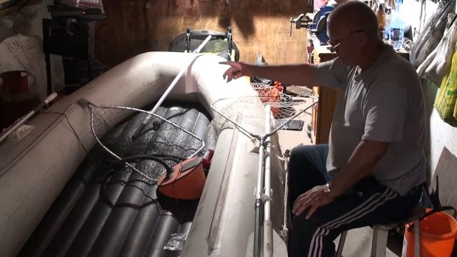 Крепление подсака в лодке.