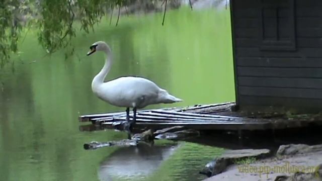 Лебедів-шипунів (Cygnus olor) давно тримають на ставку у Стрийському парку м. Львова. У спеціально зробленому для них дерев'яному будиночку вони вже не раз виводили пташенят. Цей птах, очевидно, вирішив "освіжити" своє гніздо звисаючою гілкою верби. Але відірвати гілку не просто, навіть таким дзьобом. Поки що спроба не вдалася. лебідь шипун