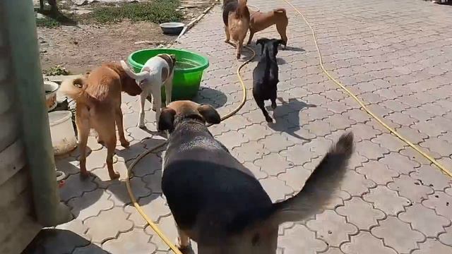 В такую жару волонтер ставит везде во дворе ёмкости с водой