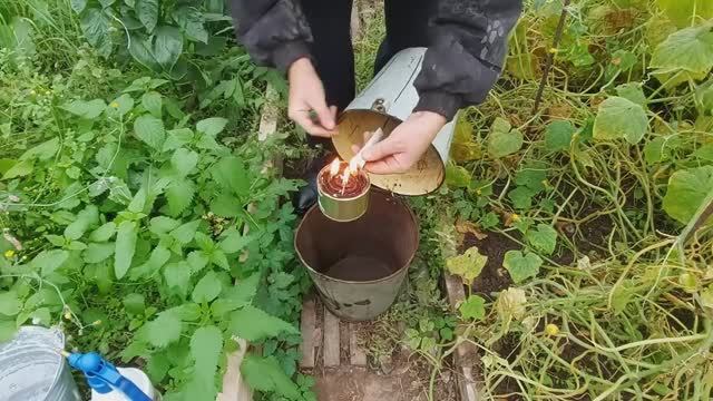 Очень простая печка в теплицу. Из консервной банки и двух вёдер своими руками.