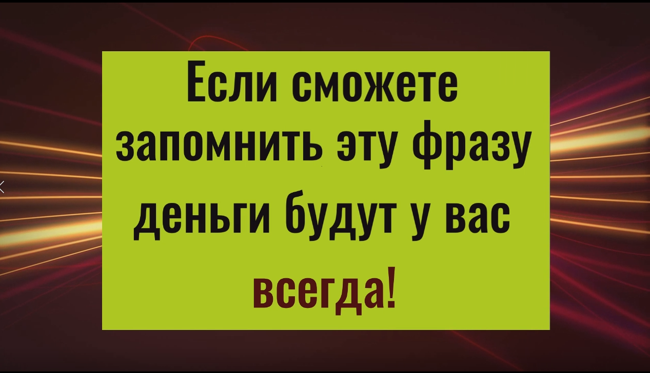 Если сможете запомнить эту фразу - деньги будут у вас всегда