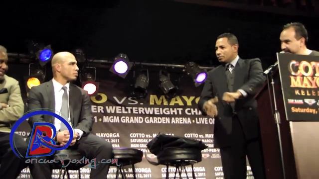 http://BoricuaBoxing.com -- Miguel COTTO vs Ricardo MAYORGA NYC Press Conference and Behind The Scenes. Watch COTTO vs. MAYORGA - "RELENTLESS" - March 12, 2011 on Showtime PPV!!! For the first time in five years, Hall of Fame promoters Bob Arum and Don King will join forces to present "Relentless" -- the first major pay-per-view world championship boxing event of the season -- featuring the Pride of Puerto Rico, MIGUEL COTTO defending his World Boxing Association (WBA) super welterweight title against two-division world champion RICARDO "El Matador" MAYORGA, on Saturday, March 12, at MGM Grand in Las Vegas, Nev. Cotto vs. Mayorga will be produced and distributed Live on SHOWTIME PPV®, beginning at 9 p.m. ET/6 p.m. PT. The pay-per-view broadcast will also feature the return of former WBA super welterweight champion and future rabbi YURI FOREMAN, who will be taking on Top-10 contender PAWEL WOLAK in a 10-round super welterweight rumble, World Boxing Council (WBC) female super welterweight champion CHRISTY MARTIN, going for her landmark 50th professional victory and IBF lightweight champion MIGUEL VAZQUEZ defending his title against mandatory challenger LENNY ZAPPAVIGNA. Cotto vs. Mayorga will be promoted by Top Rank, in association with Cotto Promotions, Don King Productions, Tecate and MGM Grand. Remaining tickets, priced at $400, $300, $200, $100, and $50, not including applicable service charges, can be purchased at all Las Vegas Ticketmaster locations (select Smith's Food and Drug Centers and Ritmo Latino.) Ticket sales are limited to 16 per person. To charge by phone with a major credit card, call Ticketmaster (800) 745-3000. Tickets are also available for purchase at www.mgmgrand.com or www.ticketmaster.com. The Cotto vs. Mayorga pay-per-view telecast, beginning at 9 p.m. ET/6 p.m. PT, has a suggested retail price of $49.95. It will be produced and distributed live by SHOWTIME PPV®. The telecast will be available in HD-TV for those viewers who can receive HD.