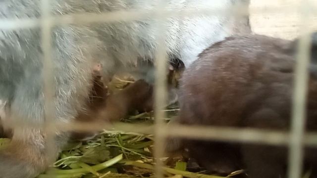 10 августа 2025 года. Воскресенье. Дом у озера. Крольчата растут. Бегают по клетке, знакомятся с окружающим миром, ищут еду... Скоро надо будет отселять...