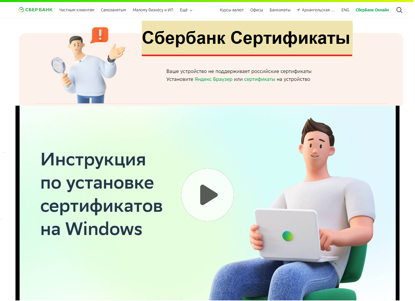 Госуслуги https://www.gosuslugi.ru/crt - Поддержка работы сайтов с российскими сертификатами Если коротко, то можно просто использовать Яндекс.Браузер для того, чтобы безопасно пользоваться Сбербанком онлайн и другими российскими сайтами. Приглашаю: Сайты Интернет-грамотность с Надеждой https://www.inetgramotnost.ru/ Компьютерная грамотность с Надеждой https://www.compgramotnost.ru/ ДЗЕН канал: https://zen.yandex.ru/compgramotnost.ru ТЕЛЕГРАМ канал https://t.me/compgramotnost ВКОНТАКТЕ https://vk.com/compgramotnost РУТУБ https://rutube.ru/channel/24825440/ ЮТУБ https://www.youtube.com/channel/UC8yldAZ712sq3kAzRwEzNoA