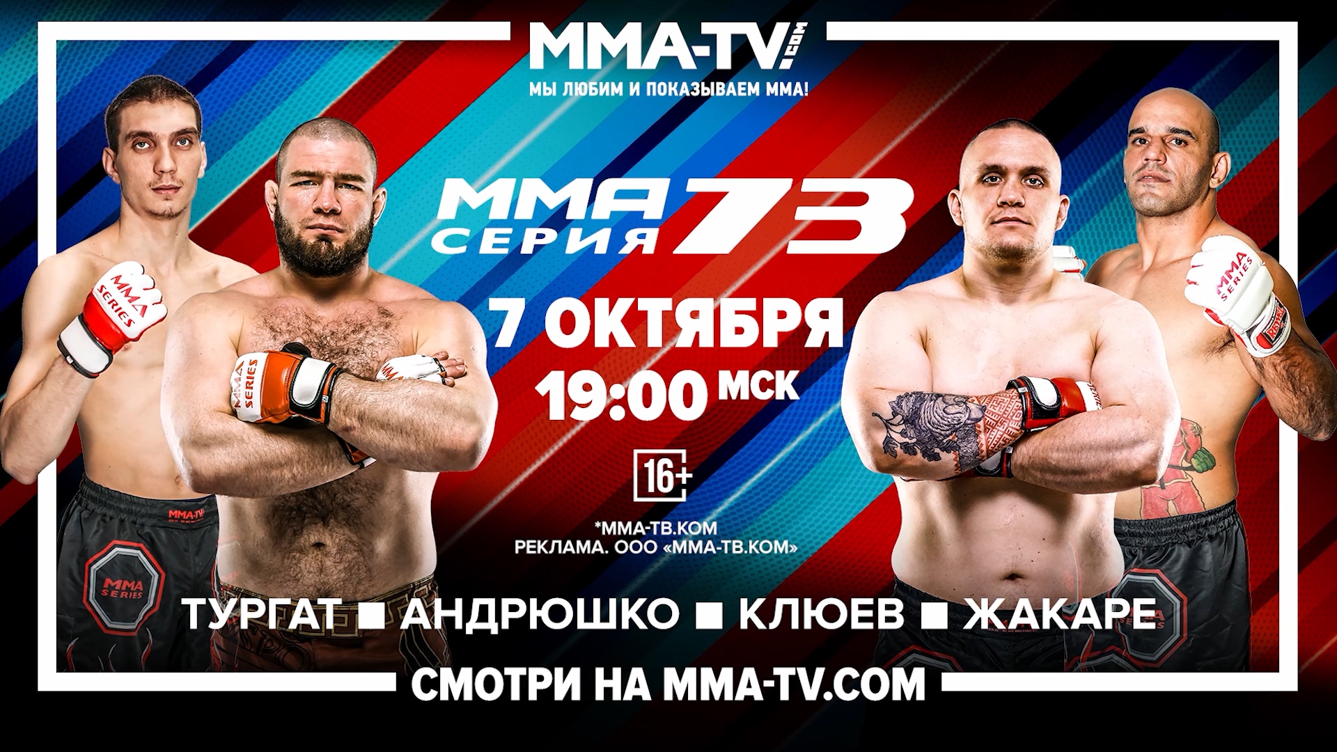 Неделя турнира ММА Серия–73! Одним из наиболее интересных событий станет бой двух грозных тяжеловесов Димитрия Андрюшко и Виктора Клюева. На счету Андрюшко шесть побед при одном поражении и одной ничьей в нашей лиге. А Клюев идёт с идеальным рекордом в ММА Серии и имеет на счету пять побед ? В основном карде: Кассио Жакаре, Дмитрий Лазурин, Максим Дюпин, Тамаз Тарба, Никита Чистяков, Тимур Тургат и многие другие! Следите за новостями ММА Серии ? ? ММА Серия–73: Андрюшко - Клюев | 7 октября 19:00 мск ? Прямая трансляция состоится на телеканале MMA-TV.com