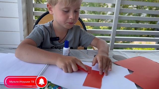 Руслан делает аппликацию из цветной бумаги