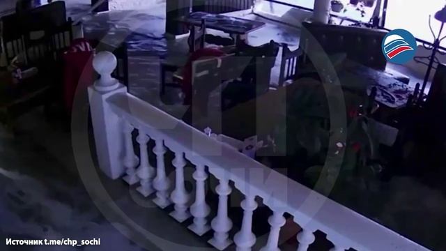 Огромная волна ворвалась в ресторан в Сочи, унося мебель и людей