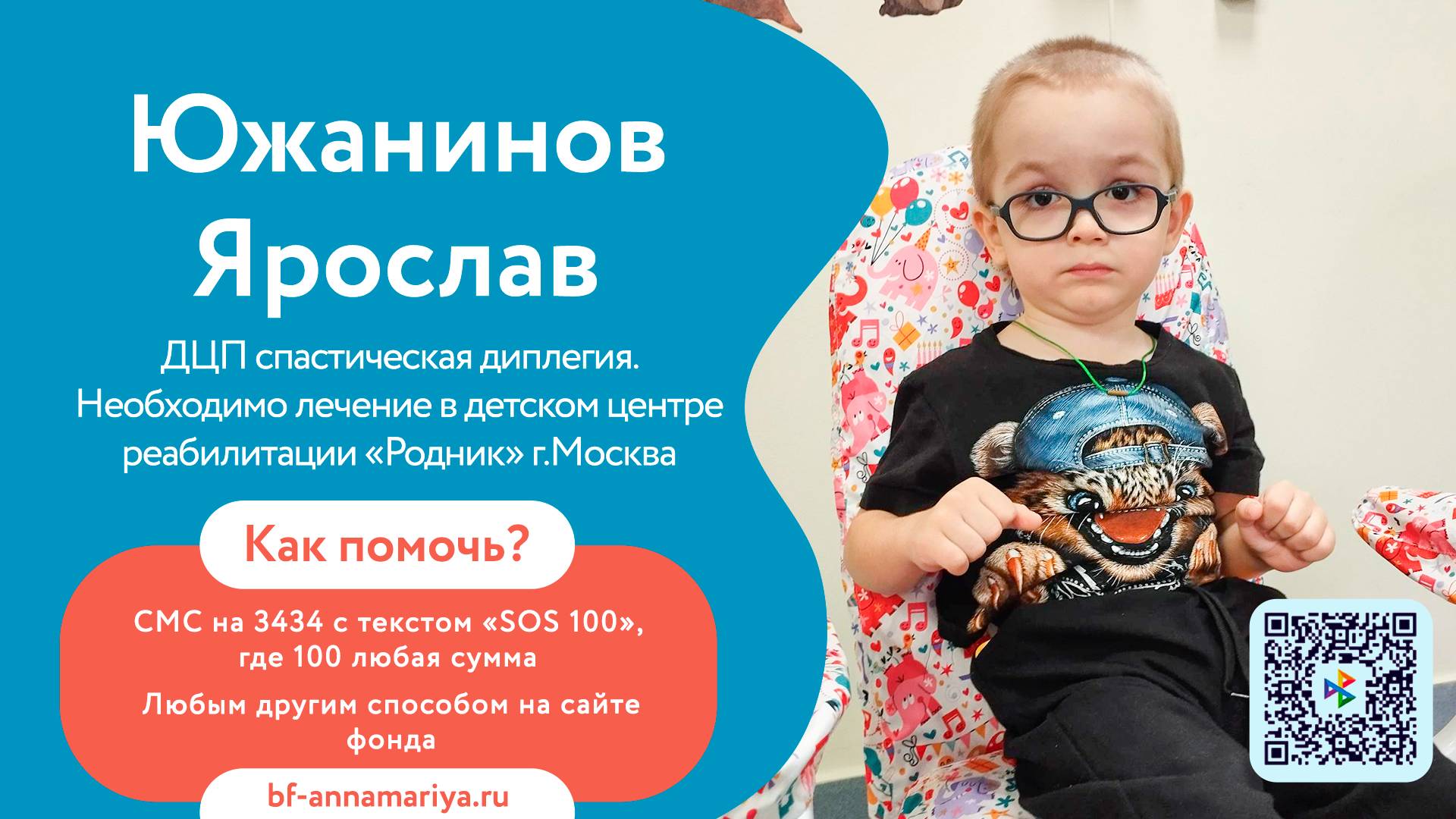 Сегодня мы обращаемся к вам за помощью для семьи Южаниных, которые воспитывают троих сыновей. Младший из них, Ярослав, появился на свет после тяжелой беременности и чудесного спасения мамы и малышей. Но уже в 7 месяцев у Ярослава проявились первые тревожные симптомы: он отставал в развитии от брата-двойняшки, не мог сидеть, ползать, вставать. Диагнозы — мышечная дистония, спастическая диплегия, угроза ДЦП — стали настоящим шоком для семьи. Начался долгий путь: поездки к врачам, реабилитации, постоянные занятия с педагогами. И Ярослав уже достиг своих первых побед: начал ползать на четвереньках, вставать на коленки, а в годик — смог встать у опоры! Сейчас он учится ходить, очень старается, несмотря на слабость ног и новые диагнозы — вальгусная деформация стоп, дисплазия тазобедренных суставов. Он очень старается быть похожим на своих братьев: любит узнавать новое, занимается с учителями, играет, лепит, рисует и мечтает о том, чтобы бегать и гулять наравне с другими детьми. Его лечение не прекращается ни на день, но семье уже тяжело справляться с затратами самостоятельно. Ваше участие — это большой шанс для Ярослава на полноценное будущее и детство без ограничений! Как помочь: 🔵 СМС на 3434 с текстом «SOS 100» (где 100 — любая сумма) 🔵 Пожертвовать онлайн на сайте фонда - https://bf-annamariya.ru/2219-juzhaninov-jaroslav.html Спасибо всем неравнодушным за вашу поддержку и веру! Даже самый маленький вклад станет огромным шагом на пути к выздоровлению Ярослава!