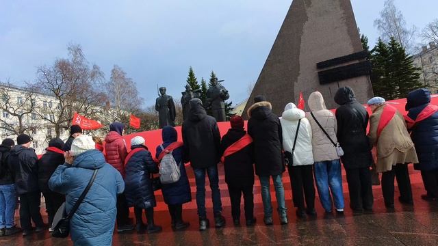 На площади у Вечного огня была развернута масштабная копия Знамени Победы