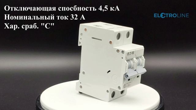 Модульный автоматический выключатель производства Eaton. Двухполюсный, с кривой отключения "C". Номинальный ток 32 А. Применяется в жилых помещениях, частных домах и там, где достаточно отключающей способности 4,5 кА. Монтаж на Din-рейку. Подробнее, смотрите на страничке нашего интернет-магазина, по ссылке: https://electroline.ru/product/hl-c322-modulnyy-avtomaticheskiy-vyklyuchatel-2-polyus-krivaya-otklyucheniya-c-nominalnyy-tok-32a.html