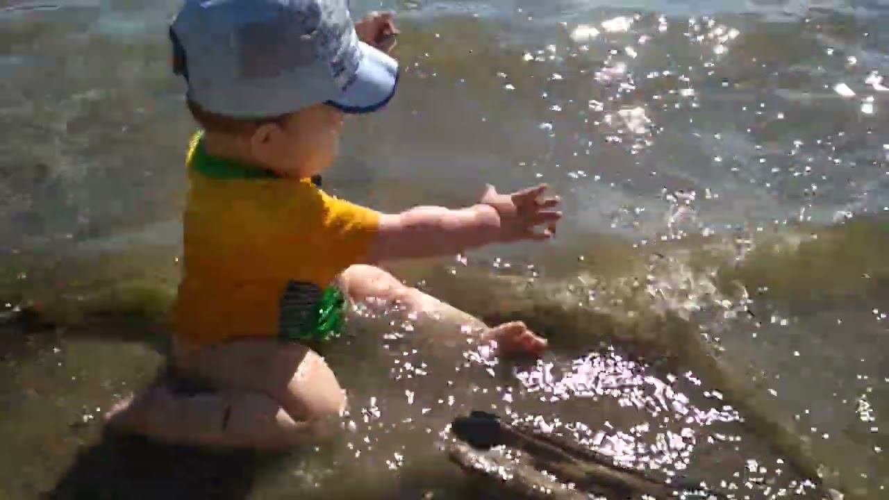 Маленький Лёва - 1 год 3 месяца. Плюхается в речке.