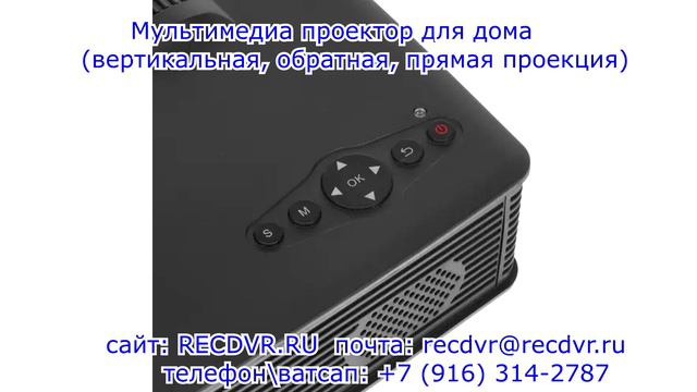 https://recdvr.ru/product/multimedia-proektor-dlja-doma-vertikalnaja-obratnaja-prjamaja-proekcija/ - Мультимедиа проектор для дома (вертикальная, обратная, прямая проекция) Предлагаем вашему вниманию мультимедиа проектор с LED лампой с возможностью вертикальной, обратной и прямой проекции. Желаете устроить просмотр фильма на огромном экране и не ходить в кинотеатр?! Этот девайс вам отлично подойдёт. В конструкции корпуса предусмотрены наличие динамика для воспроизведения звука, а также разъёмы для карты памяти и внешних USB носителей. То есть, вы записали, например, фильмы или сериалы на карту памяти или флешку и вставили её в соответствующий слот проектора и можете наслаждаться просмотром со звуком вашего любимого контента. Для удобства управления прибором в комплекте идёт пульт управления со всеми необходимыми кнопками. Технические характеристики Цвет: черный Проекционная технология: LCD Собственное разрешение: 800×480 Максимальное разрешение: 1920×1080 Соотношение сторон: 4:3, 16:9, 16:10 Яркость изображения: 1200 лм Контрастность: 350:1 Диагональ матрицы (дюйм): 4″ Тип лампы: LED Срок службы лампы: 30000 часов Мощность лампы: 40 Вт Варианты проекции: вертикальная, обратная, прямая Тип фокусировки: ручная Минимальное проекционное расстояние: 1 метр Максимальное проекционное расстояние: 3 метра Минимальный размер проекции по диагонали: 0.8128 м Максимальный размер проекции по диагонали: 3.048 м Минимальный размер проекции по диагонали (дюйм): 32″ Максимальный размер проекции по диагонали (дюйм): 120″ Воспроизведение с USB накопителей: есть Устройство для чтения карт памяти: есть Видеоформаты / кодеки: DivX, MKV, MOV, RMVB, XVID, XviD Аудиоформаты / кодеки: AAC, MP3, WMA Формат изображений / файлов: BMP, JPEG, PNG HDTV-совместимость: 720p, 1080p Количество встроенных динамиков: 1 шт Суммарная мощность динамиков: 3 Вт Аудио- / видеовходы: 1x 3RCA, 1x HDMI, 1x VGA, 1x mini Jack 3.5 mm Аудио- / видеовыходы: 1x mini Jack 3.5 mm Интерфейсы: 2x USB-A, SD Совместимость: ОС Windows Тип коррекции трапецеидальных искажений: вертикальная Настройка трапецеидальных искажений: ручная Тип и напряжение питания: от сети 110-240В/50-60 Гц Потребляемая мощность: 50 Вт Материал корпуса: пластик Потолочное крепление: есть Наличие ПДУ: есть Тип пульта ДУ: ИК Рабочая температура: от 5 до +35℃ Регулируемые ножки