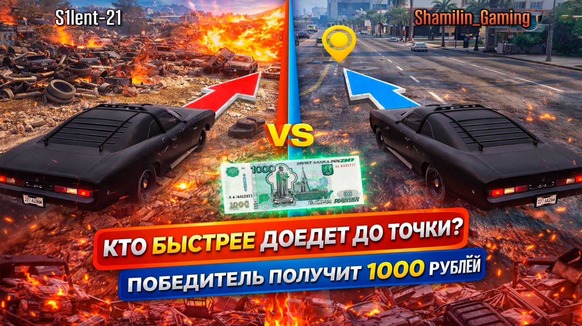 В этом видео мы устроили челлендж в GTA 5. На одинаковых машинах нужно доехать до точки назначения, но каждый выбирает свой путь — короткий через бездорожье или длинный по дороге. Кто окажется быстрее и заберёт 1000 рублей? gta 5, гта 5, gta v, gta 5 challenge, gta 5 гонка, gta online