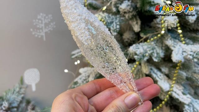 331640 Елочное украшение Сосулька с бисером прозрачная стекло 15см