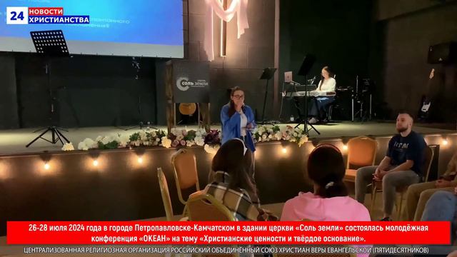 26-28 июля 2024 года в городе Петропавловске-Камчатском в здании церкви «Соль земли» состоялась молодёжная конференция «ОКЕАН» на тему «Христианские ценности и твёрдое основание». Ссылка: https://rutube.ru/video/8c54ee0a7b5983478edd6c5b1e82a04b/