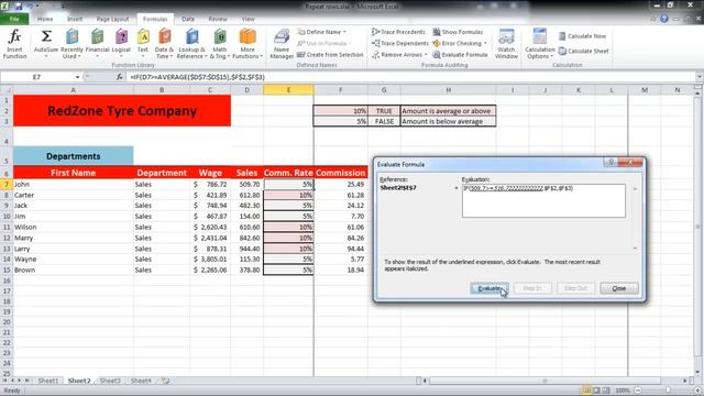 Microsoft Excel is a detailed software that can be used as a multiple analysis tool. Don't forget to check out our site http://howtech.tv/ for more free how-to videos! http://youtube.com/ithowtovids - our feed http://www.facebook.com/howtechtv - join us on facebook https://plus.google.com/103440382717658277879 - our group in Google+ Microsoft Excel is a detailed software that can be used as a multiple analysis tool. It gives simple options that can help you manage and manipulate data to derive desired or actual results. It is important to understand the workings of this software to be able to use it effectively. Working with formulas in Excel is quite easy and very helpful. Huge amounts of data can be worked with using these formulas. To learn how to evaluate formulas in Excel, follow this step by step tutorial. Step # 1 -- Evaluate Formula in Formula Auditing Over here, we have the Sales per person and the commission rate, for which we have applied a formula. Let's click on the first cell of the, "Commission Rate" column and go to the "Formulas" tab. Now, in the "Formula Auditing" section, click on the "Evaluate Formula" in Excel. The "B5" is underlined because it is under evaluation. Now click on the "Evaluate" button and it will show what the selected cell contains. Now the next argument is underlined, click on the "Evaluate" button again and it will show the average of the column. Step # 2 -- Click on Evaluate If you press the "Evaluate" button again, it will tell whether the selected argument is False or not. Over here, this formula in Excel is supposed to give an answer based on the Sales value. Step # 3 -- Conditions applied on Formula If the value is greater than or equal to the average of the entire sales column, then it is True and a commission rate of 10% will be applied. If it is less than the average, which is the scenario over here, then it will be false and a rate of 5% will be applied.