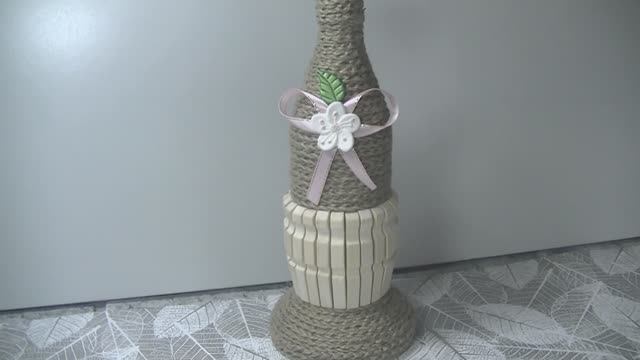 Декор стеклянной бутылки . Сувенир для дома .