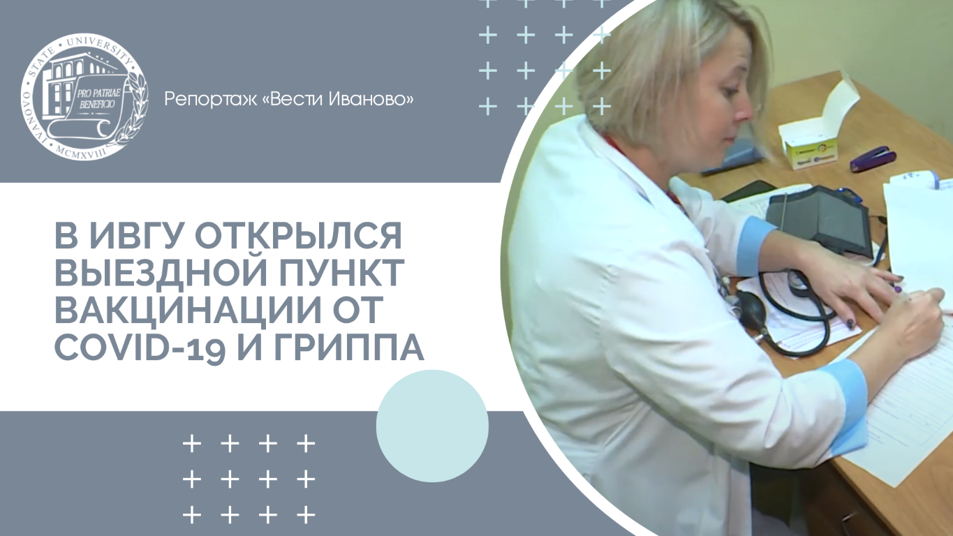 Пришли за знаниями – а получили еще и иммунитет! 15 сентября 2022 г. в Ивановском государственном университете преподаватели и студенты смогли сделать прививку от ковида и гриппа, не выходя из учебного корпуса № 6. В прошлом учебном году специалисты приезжали в ИвГУ около 10 раз, в этом выездную бригаду врачей планируют приглашать каждый месяц, чтобы как можно больше людей смогли привиться и поднять уровень коллективного иммунитета. «Пока о дистанционном обучении речь не идет, есть только единичные случаи заражения», – прокомментировал ситуацию проректор по молодежной политике и социальному развитию Н.Д. Сорокин. Подробности – в репортаже студентки отделения журналистики, рекламы и связей с общественностью ИвГУ Ксении Зерновой («Вести Иваново»).