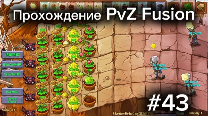 Прохождение уровня локации "Крыша" с четырьмя волнами в моде PvZ Fusion