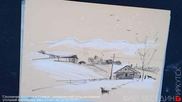 "Охотничий посёлок в Саянах" (Вообще-то, я там не был. Это мои фантазии) :-) Уголь, мел, 21х30 см, 27.02.2019 г. * * * Welcome to the community "Urban Sketching, Art and Travel РИСУЕМ ГОРОД!" https://www.facebook.com/groups/UrbanSketching.ArtTravel "Графический портрет. Graphic portrait" https://www.facebook.com/groups/portrait.graphic.art/ * * * DONATE-ART – добровольные взносы – Ваш знак того, что моя работа интересна и нужна. Сумма может быть мизерная, не стесняйтесь. Главное – мне понять, что это кому-то нужно и иметь возможность оплатить Интернет для будущих публикаций! Вашу благодарность и монетизированную оценку можно перечислить сюда: 1) На мобильный Сбербанк тел. 89500620251 или просто оплатить этот номер телефона. 2) Yandex-деньги: 410012167239706 3) Карта Сбербанк OLEG BESEDIN "VISA": 4276 1800 1801 1873 4) Карта Бин-Банк OLEG BESEDIN "VISA": 4627 0342 7585 8565 Пожалуйста, не стесняйтесь сообщить о взносе – это позволит мне сформировать круг друзей – закрытую группу, для которых я буду делать эксклюзивные публикации и особо интересные уроки, делиться секретами, персонально отвечать на вопросы и общаться в интерактивном онлайн режиме. * * * facebook.com/oleg.besedin instagram.com/besedin.irkutsk besedin-oleg.livejournal.com vk.com/besedin_oleg