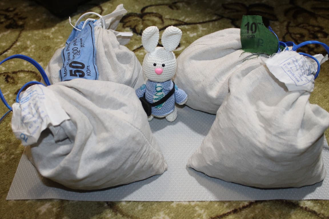 Банковские мешки номиналом «1 копейка», «5 копеек», «10 копеек», «50 копеек» образца 1997 года