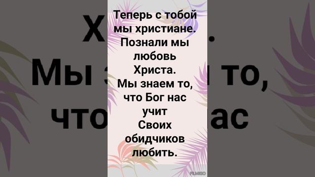 ХРИСТИАНСКИЕ ПЕСНИ ДЛЯ ХВАЛЫ И ПОКЛОНЕНИЯ ПРОСЛАВЛЕНИЯ ВООДУШЕВЛЕНИЯ #господь#музыка#христианская_музыка#музика#христианскиепесни#бог#христианскиестихи#любовь#христианство#стихи#песня#песни#иисус#иисусхристос#иисусмойбог#иисус_христос#иисусбог#иисусгосподь#хвалы_и_поклонения#хваление#хвала#прославление "ТЕПЕРЬ С ТОБОЙ МЫ ХРИСТИАНЕ!" СЛОВА, МУЗЫКА: ЖАННА ВОЛКОВА-ВАРЛАМОВА 31.01.2019 Стихи Жанна Волкова(Варламова) Теперь друзьями мы с тобою называемся. Теперь мы христиане, по вере во Христа. От прошлой жизни мы с тобою отрекаемся. Идём мы по следам Христа. Припев: От прошлого всей жизни отрекаемся. От прошлых всех ошибок, зла, обид. Любовь в прощении постигается. Любовь не мыслит зла, не ищет своего. Теперь с тобой мы христиане... Познали мы любовь Христа. Мы знаем то, что Бог нас учит Своих обидчиков любить. Припев: От прошлого всей жизни отрекаемся... От прошлых всех ошибок, зла, обид. Любовь в прощении постигается. Любовь не мыслит зла, не ищет своего. Теперь с тобой мы христиане. Познали мы любовь Христа. Мы знаем то, что Бог нас учит Своих обидчиков любить. Припев: От прошлого всей жизни отрекаемся... От прошлых всех ошибок, зла, обид. Любовь в прощении постигается. Любовь не мыслит зла, не ищет своего. Теперь с тобой мы христиане. Познали мы любовь Христа. Мы знаем то, что Бог нас учит Своих обидчиков любить. От прошлого всей жизни отрекаемся... От прошлых всех ошибок, зла, обид. Любовь... Христа дана нам безусловная. Чтоб мы могли людей любить. Любовь Христа им передать ту, безусловную. И научить любить, прощать, надеяться и жить. Быть Слову Божьему всегда послушными. И в Страхе Божьем перед Господом ходить. Припев: От прошлого всей жизни отрекаемся. От прошлых всех ошибок, зла, обид. Любовь в прощении постигается. Любовь не мыслит зла, не ищет своего. Теперь с тобой мы христиане. Идём с тобой путём Христа. Не праздна будет наша вера... По вере в Господа Христа. Припев: От прошлого всей жизни отрекаемся. От прошлых всех ошибок, зла, обид. Любовь 31.01.2019 Жанна Волкова-Варламова