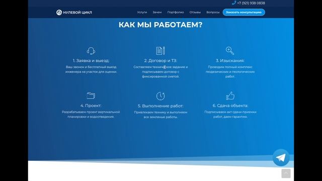 Сайт лендинг на тему благоустройства и нулевого цикла
