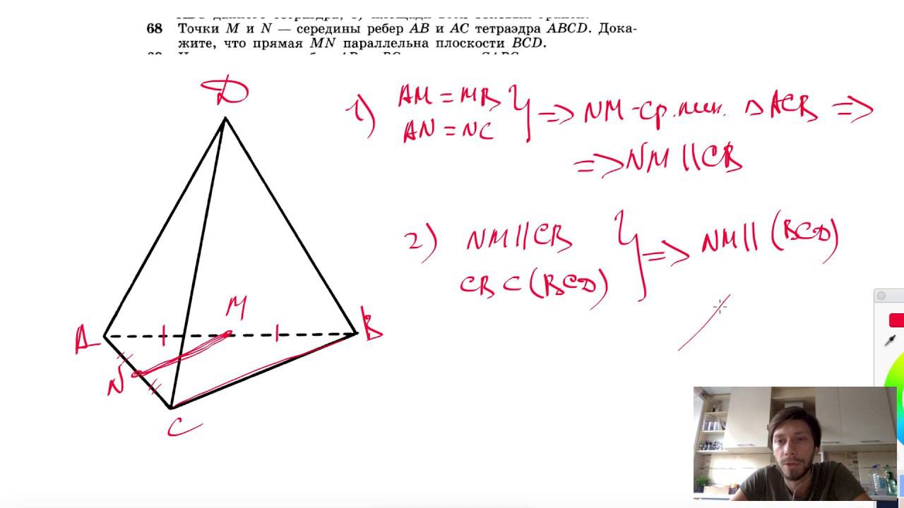 №68. Точки М и N — середины ребер АВ и АС тетраэдра ABCD. Докажите, что прямая MN параллельна плоскости BCD. Поддержать канал рублём - 5469400944002125 (Сбербанк) Мой второй канал для подготовки к ЕГЭ и ОГЭ - https://www.youtube.com/ЕвгенийСумин Инстаграм - https://www.instagram.com/EGE_OGE.math Личный инстаграм - https://www.instagram.com/ee_sumin VK - https://vk.com/evgeniysumin FB - https://www.facebook.com/EvgeniySumin