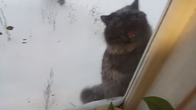 Зима. Метель. Кот лезет домой через форточку.