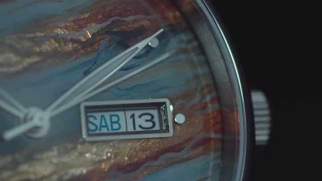 Практически невозможно распознать, находясь на Земле, какого цвета планета Юпитер. Тут необходим или мощный телескоп или снимок, сделанный из космоса. Или, можно посмотреть на циферблат часов серии Уникальные часы: он демонстрирует реальные цвета первой по величине планеты Солнечной системы: крупные красновато-коричневые полосы на светлом фоне. Они появляются из-за наличия примесей аммиака, серы и фосфора в атмосфере гиганта. Для создания модели Юпитер художники бренда выбрали технику лаковой миниатюры. На основу наносится несколько слоев лака и краски, их чередование создает эффект объема и ощущение динамики. Постепенно прорисовываются детали, добавляется серебряная или золотая фольга: на один сюжет требуется до 8 часов работы. Процесс запекания миниатюры в специальной печи придает рисунку необходимый блеск и завершенность. Часы созданы в единственном экземпляре. https://cosmos-watches.ru/catalog/unikalnye-chasy/