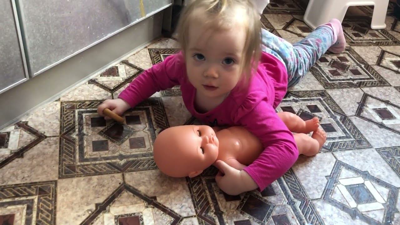 2019_04_02 Укладывает куклу спать на полу