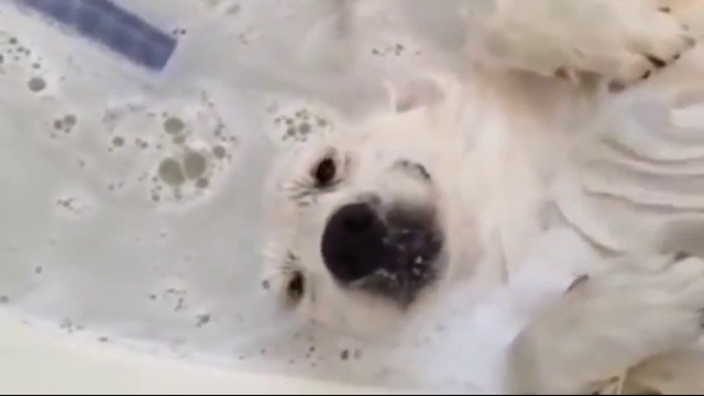 Собака балдеет в ванне. Забавного пса моют в ванне