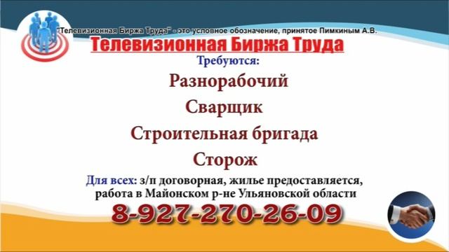 Вакансии и телефоны прямых работодателей в специализированной программе по трудоустройству "Телевизионная Биржа Труда" - г.Ульяновск