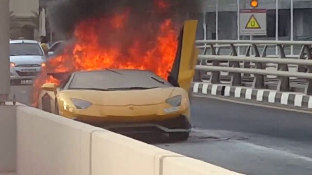 Водитель довыпендирвался, вот и сгорело ламбо :(