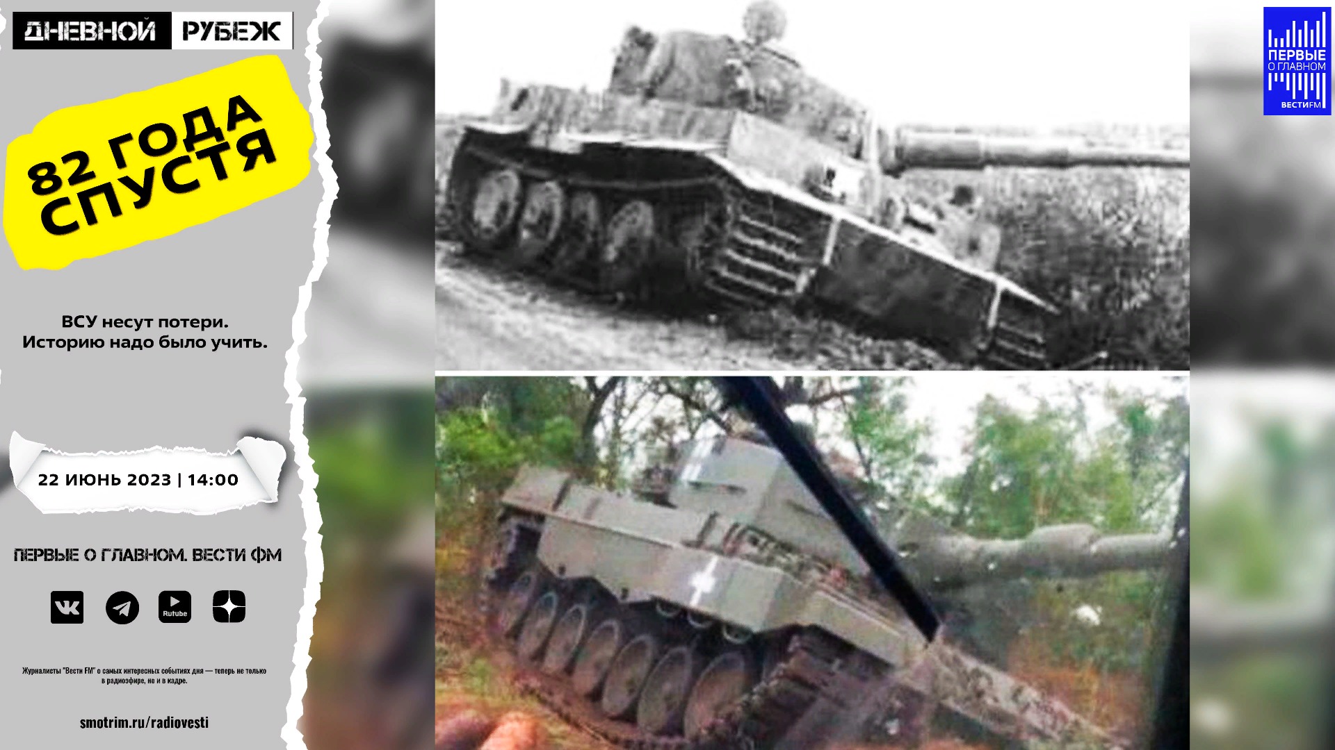 #дневнойрубеж #первыеоглавном #сво #донбасс #спецоперация #украина #путин #шойгу #искусственныйинтелект #крым #обстрелы #сальдо #антонов #деньпамятиискорби #хокинг #совбез #вермахт #гур #киев #байден #кеннедимладший ВСУ несут потери. Историю надо было учить. ?Подписывайтесь на Telegram канал - Первые о главном: https://t.me/vestifmfirst ?Подписывайтесь на Rutube канал - Первые о главном: https://rutube.ru/channel/24115140/ ?Подписывайтесь на VK канал - Первые о главном: https://vk.com/first.vestifm ?Подписывайтесь на ДЗЕН канал - Первые о главном: https://zen.yandex.ru/id/5fc4960a799d1b24b5be5189 ?Подписывайтесь на Telegram канал - ВестиFM+: https://t.me/s/vestifmplus СМОТРИТЕ НАС НА ПЛОЩАДКЕ СМОТРИМ: https://smotrim.ru/channel/365