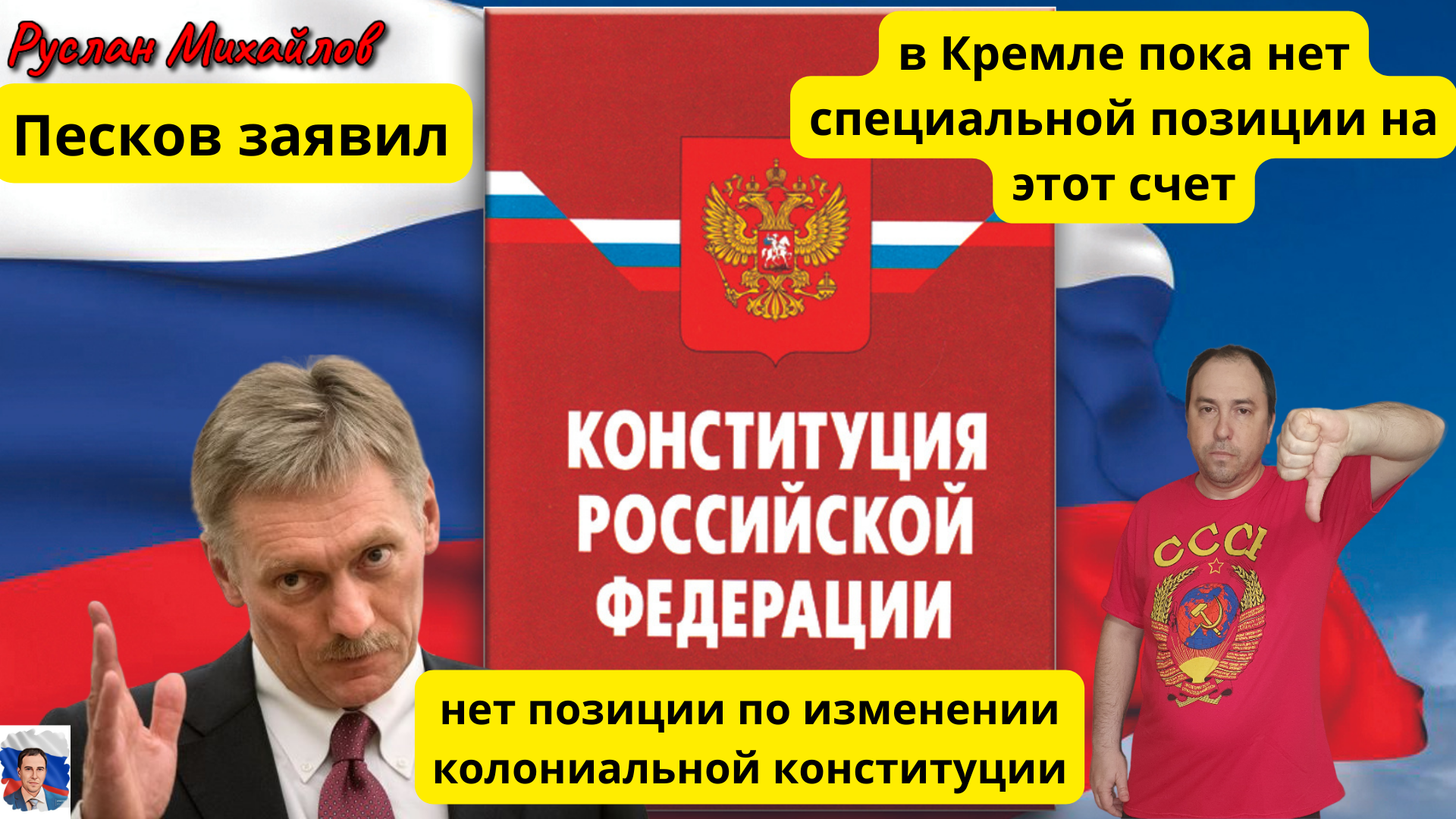 Руслан Михайлов политобозреватель сказал свое личное мнение. Песков в Кремле пока нет «специальной позиции на этот счет». Песков пресс секретарь Путина Пресс-секретарь президента России Дмитрий Песков, комментируя идею главы Следственного комитета России Александра Бастрыкина прописать в Конституции госидеологию, заявил, что это мнение авторитетного человека, но в Кремле пока нет «специальной позиции на этот счет». ссылка на источник https://news.mail.ru/politics/58714890/?frommail=1 В ролике Руслан Михайлов могут быть использованы фото, рисунки и аудио файлы из открытых источников Google, Яндекс, YouTube Поддержать канал - 4100117815002119 (Юмани) Дзен Канал https://dzen.ru/id/64dccedd72283b41bf5d9ad4 ТЕЛЕГРАМ-КАНАЛ -https://t.me/ruslnmikhailov