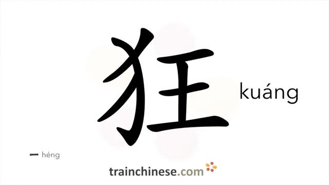 狂 (kuáng) crazy, mad; wild, violent; unrestrained / безумный; сумасшедший; бешеный (также перен.)