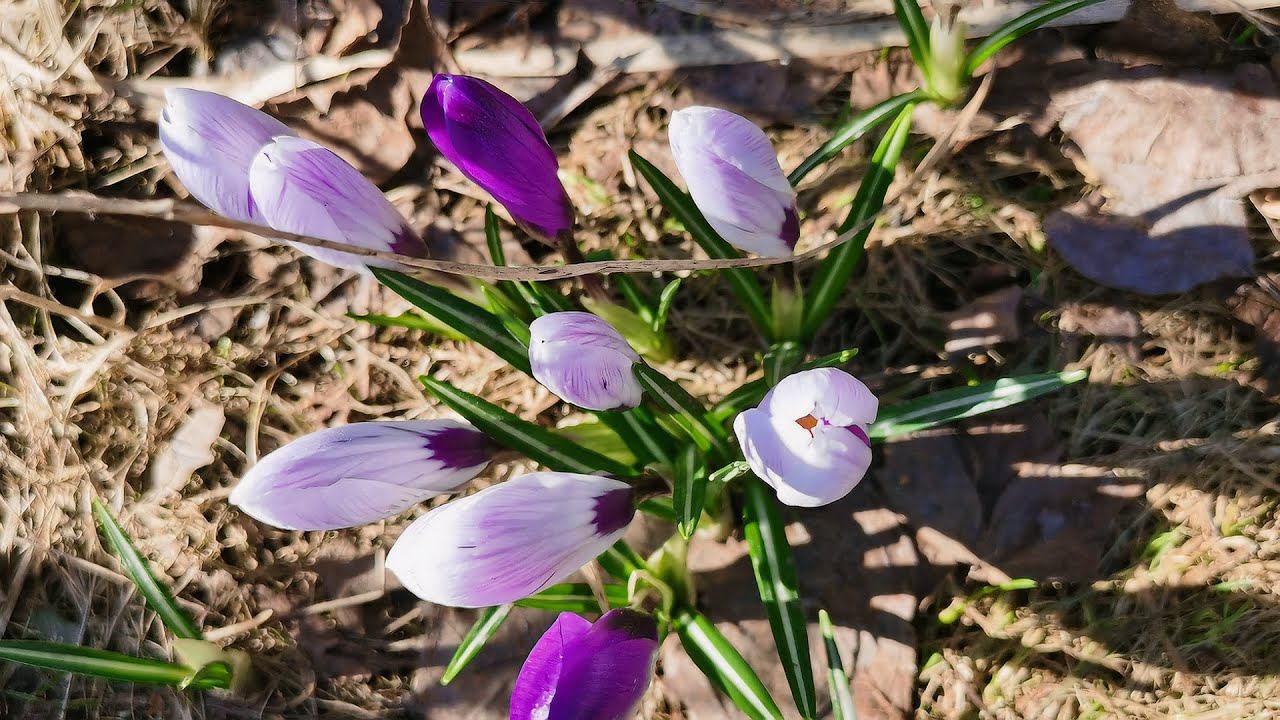 Крокусы у сгоревшего колодца 5 апреля 2024