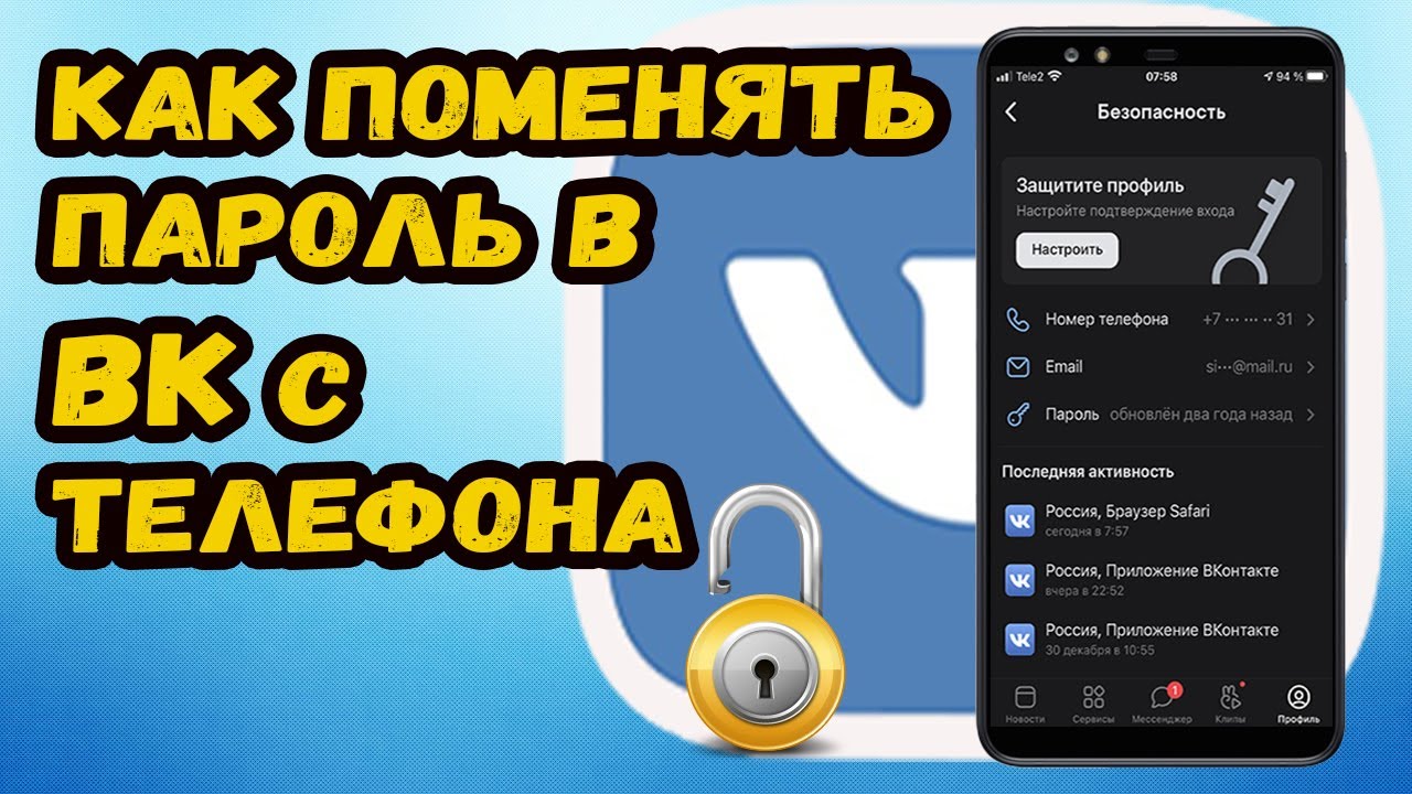 Как поменять пароль в вк через телефон?