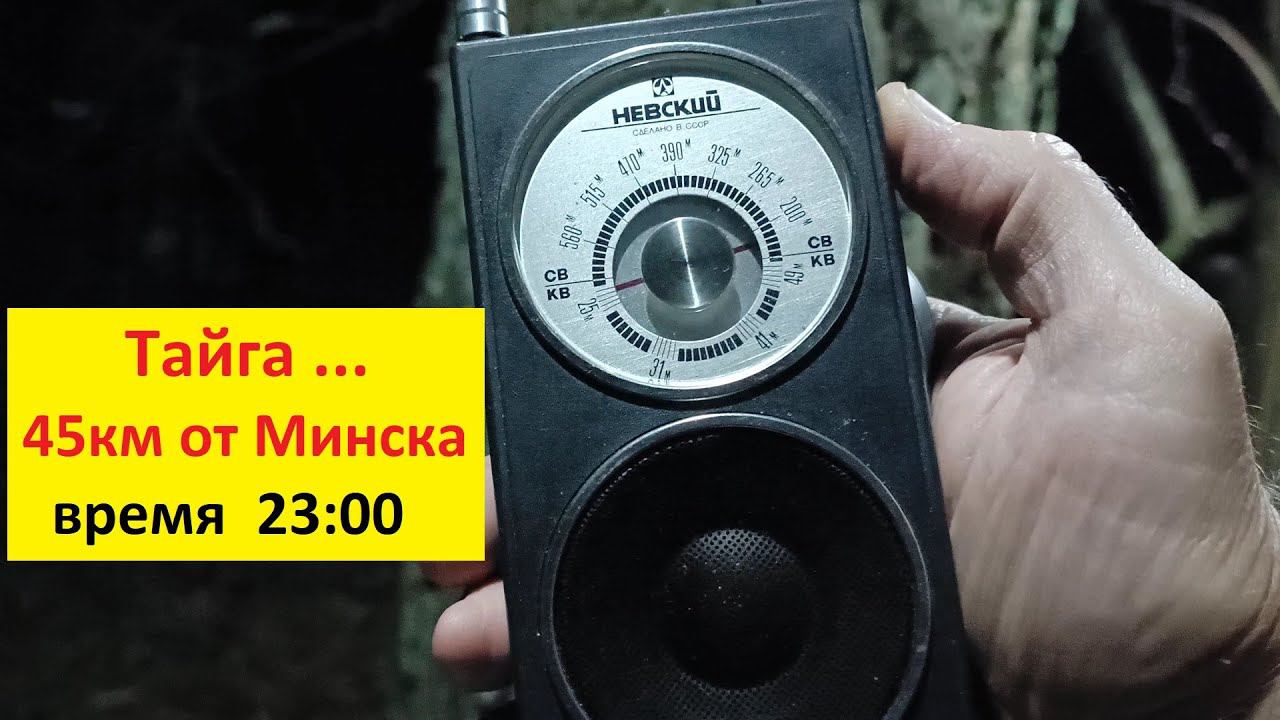 Радиоприёмник Невский 1980 г. Приём на СВ и КВ . Лес ,Тайга - 45 км от г. Минска . Время 23:00 .