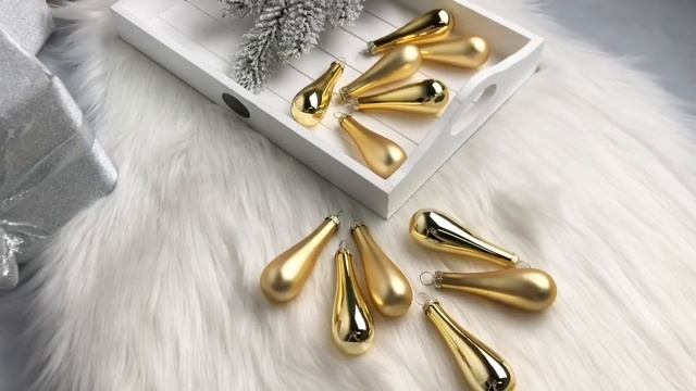 Набор ёлочных украшений ЭЛЕГАНТНЫЕ КАПЛИ, стекло, золотые, матовые и глянцевые, 011036/1001399