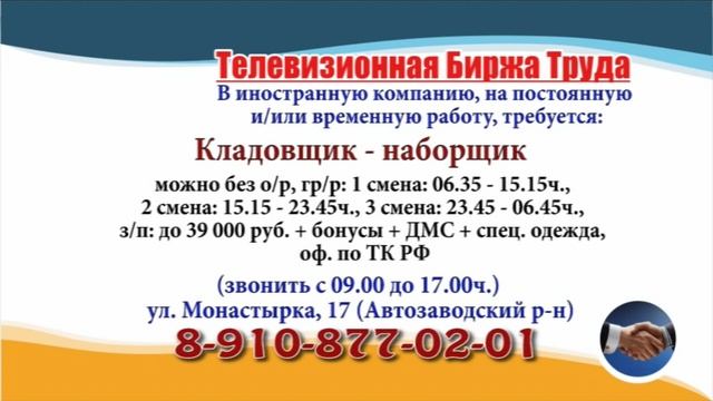 Вакансии и телефоны прямых работодателей в специализированной программе по трудоустройству "Телевизионная Биржа Труда" - г.НИЖНИЙ НОВГОРОД