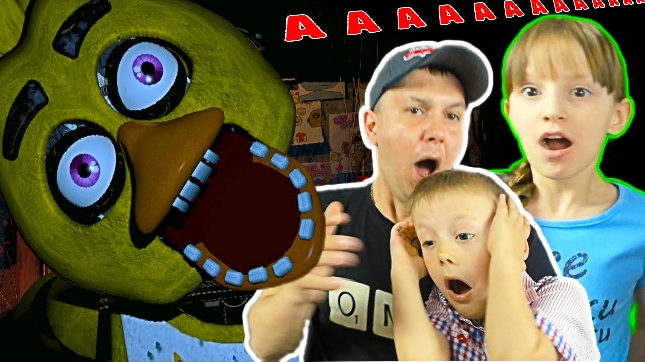 Страшные ЧИКА и БОННИ напугали семью 5 Ночей с Фредди в ОЧЕНЬ ЖУТКОЙ игре Five Nights at Freddy's