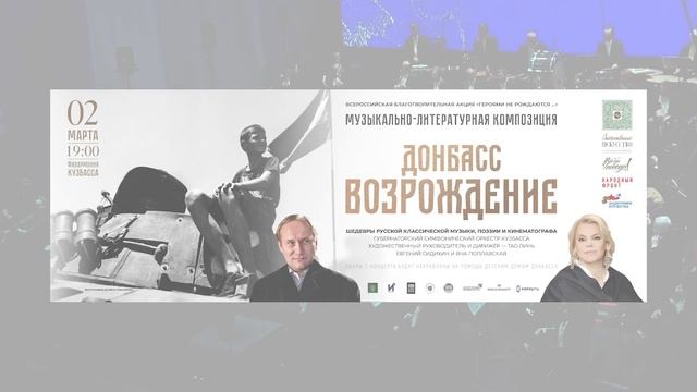 2 марта в филармонии Кузбасса - музыкально-литературная композиция «Донбасс. ВОЗРОЖДЕНИЕ» в рамках ВСЕРОССИЙСКОЙ БЛАГОТВОРИТЕЛЬНОЙ АКЦИИ «ГЕРОЯМИ НЕ РОЖДАЮТСЯ». «Любовью и единением спасемся» - так говорил Сергей Радонежский. Боль Донбасса отдается в сердце каждого русского человека. И путь к возрождению России лежит через Донбасс… Уникальность концерта составят музыкальные и литературные произведения современных авторов, которые сольются в единую литературно-музыкальную композицию. Зрители откроют для себя новые шедевры русской классической музыки и поэзии нашего времени. Также прозвучат отрывки из писем и дневников мирных жителей Донбасса разных исторических периодов. Для создания визуальной части используются кадры из документальных и художественных фильмов, в том числе созданных в период СВО. Главными действующими лицами вечера станут артисты театра и кино Яна Поплавская и Евгений Сидихин, Губернаторский симфонический оркестр и Губернаторский камерный хор. В программе прозвучат произведения композиторов Юрия Абдокова, Андрея Микиты, Алины Небыковой, Александра Петрова, Петра Корягина, Марии Андреевой, Елизаветы Панченко, донбасских композиторов Виктора Ульянича, Евгения Карабанова, Александра Рудянского, Елены Чистой. Будут исполнены стихи следующих поэтов: Владимир Скобцов, Дмитрий Мельников, Юрий Резаев, Анна Золотарева и другие. «Героями не рождаются…» - всероссийская благотворительная акция, суть которой - создание объединяющей и мобилизующей силы в тылу. Это серия концертов в крупнейших концертных залах страны с участием ведущих артистов и коллективов России, направленных на моральную и материальную поддержку бойцов на передовой. Сборы с концерта будут направлены на помощь детским домам Донбасса и военнослужащим Кемеровской области. Через портал «Все для Победы» Общероссийского Народного Фронта будет размещена информация о формах финансовой поддержки и о возможных способах помощи защитникам и мирным жителям освобожденных территорий. Каждый билет – это вклад в нашу общую Победу! В аванзале вы увидите выставку донецкого фотохудожника Дениса Григорюка, работы лучших художников финалистов Межрегионального конкурса «Уголь земли русской», а также выставку рисунков детей Донбасса «Пусть будет так».