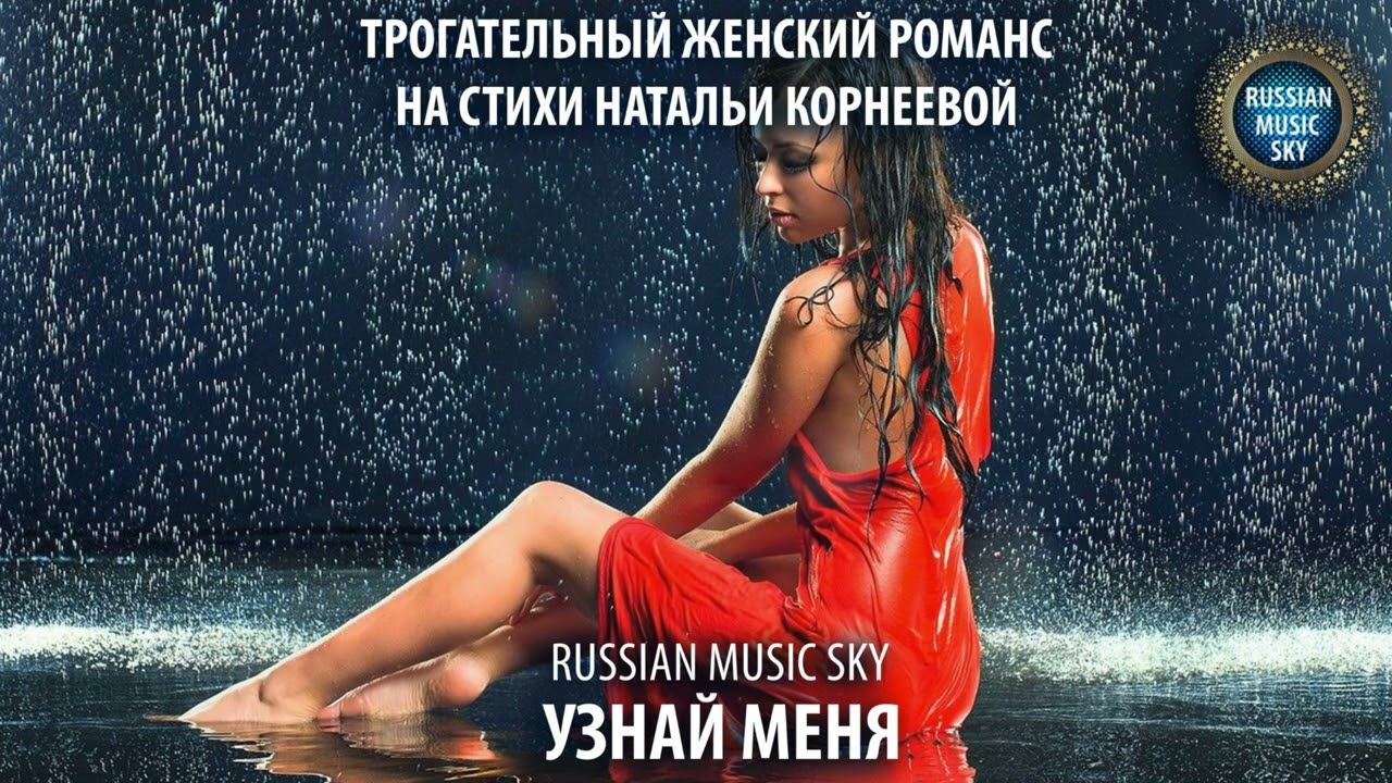 Узнай меня - Russian MusicSky (2025) Трогательный женский романс на стихи Натальи Корнеевой https://youtu.be/h0pRd-fb4Vc?si=GHZbI6aoFq1Z5XI5 Узнай меня по каплям дождевым, Упавшим на плечо твоё нечаянно, По лепестку, нелепо опечаленно, Слетевшему к ногам твоим. По озорному шкоде-ветерку, Что гонит разноцветные бумажки, По вымокшей до нитки промокашке, По чистому и белому листку. В рассвете утра и в закате дня, В ночи безлунной и в не звёздном небе, В засохшем на тарелке черном хлебе, В протяжном грустном стоне корабля. В прерывистом дыхании зимы, И в нескончаемом звонке капели, И в том, что никогда бы не посмели, Ни рассказать, и ни подумать сны. Я ничего не требую взамен, Пусть пробегут невидимые мимо, Я не прошу любить и быть любимой, Пусть сбудется всё то, что ты хотел. Узнай меня по каплям дождевым, Упавшим на плечо твоё нечаянно, По лепестку, нелепо опечаленно, Слетевшему к ногам твоим. ———————————————- Узнай меня - Russian MusicSky (2025) Трогательный женский романс на стихи Натальи Корнеевой https://youtu.be/h0pRd-fb4Vc?si=GHZbI6aoFq1Z5XI5 Песня создана с использованием синтетического голоса и Ai музыки, Автор текста: Наталья Корнеева