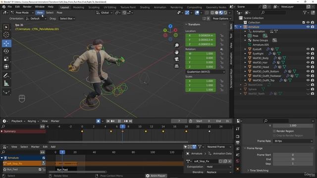 58. Creating the run right fwd to stand soft stop