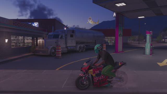 Показываю расположение заправки в Вахайаве в игре, попутно выполняя фотозадание из плейлиста «BIKE LOVERS».