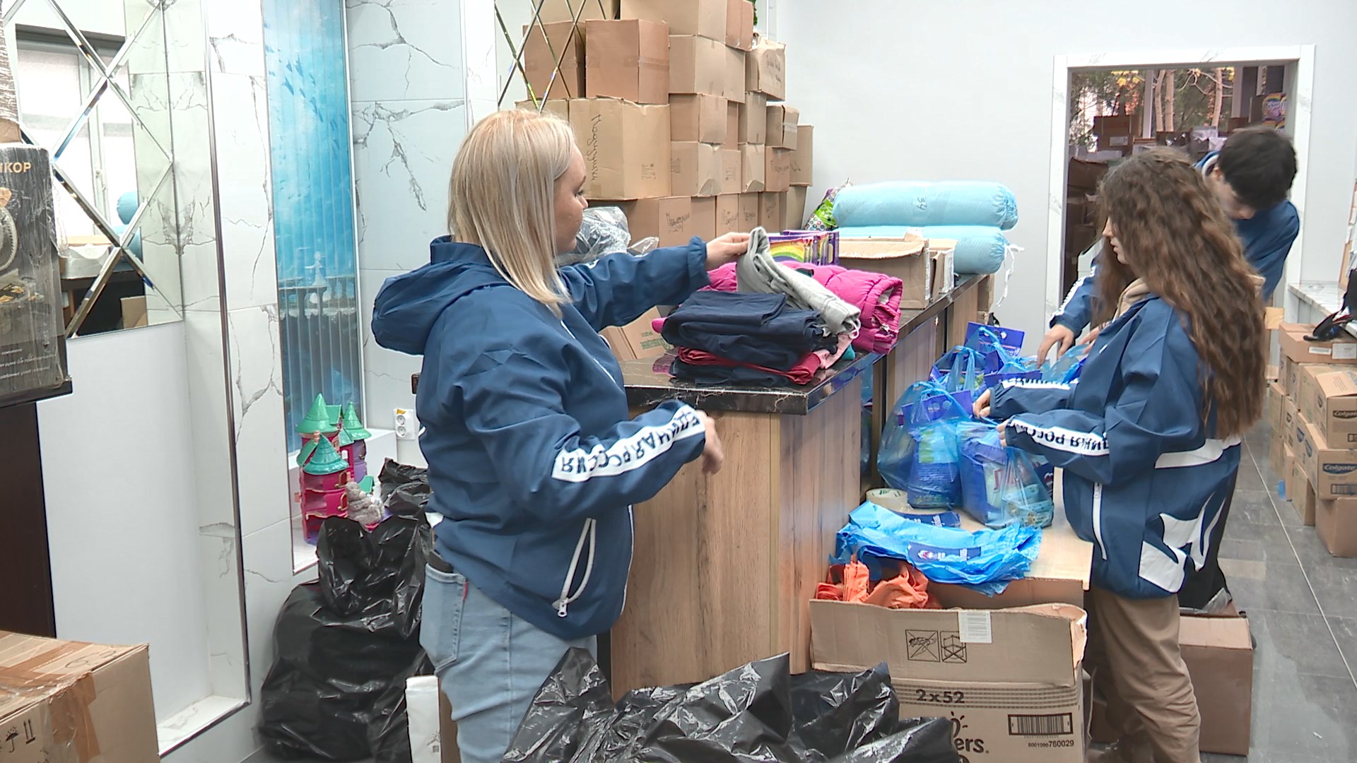 В преддверии праздника волонтеры попросили ребят написать письма Деду Морозу. Сейчас в Центре формируются наборы по заявкам, в то же время активисты продолжают собирать грузы с вещами первой необходимости, которые передают в пункты временного размещения.
