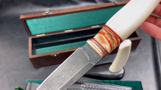 Шикарный подарочный набор получился с Эксклюзивным ножом Русский 2 из мозаичного дамаска